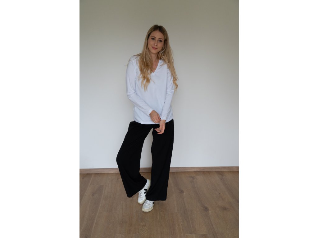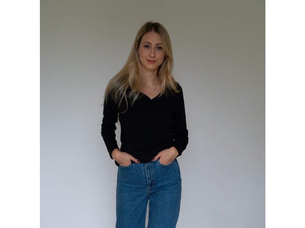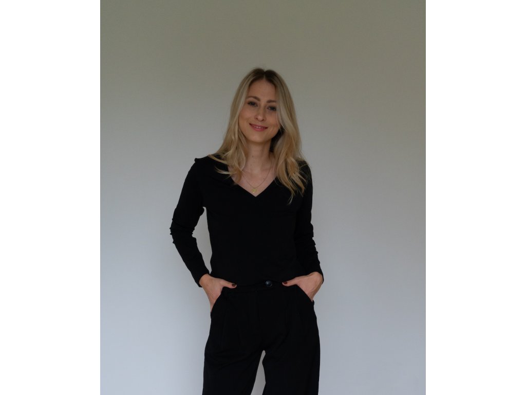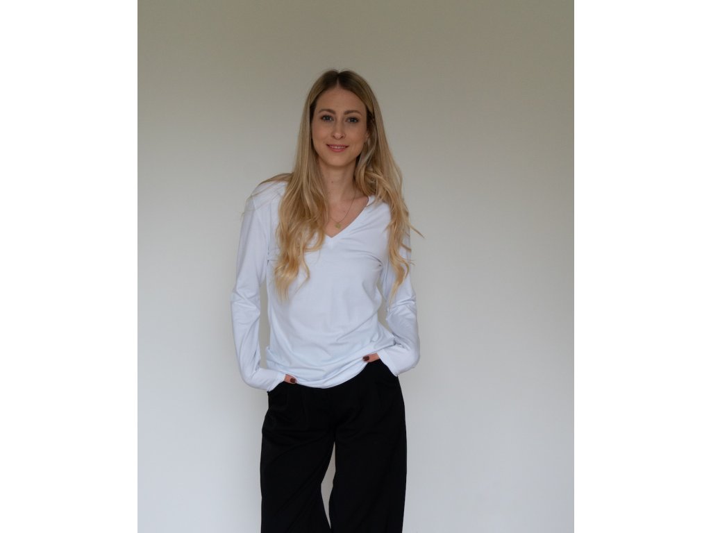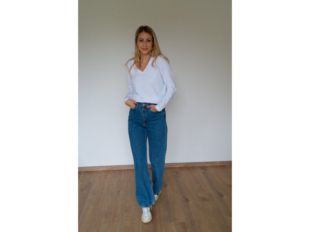Bavlněné tričko s dlouhým rukávem a výstřihem v