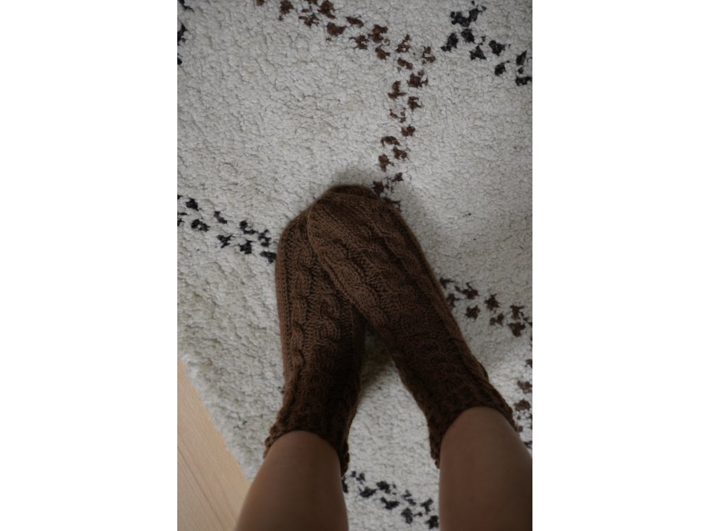 Ponožky jsou ručně pletené z alpaky, vlny a polyamidu.